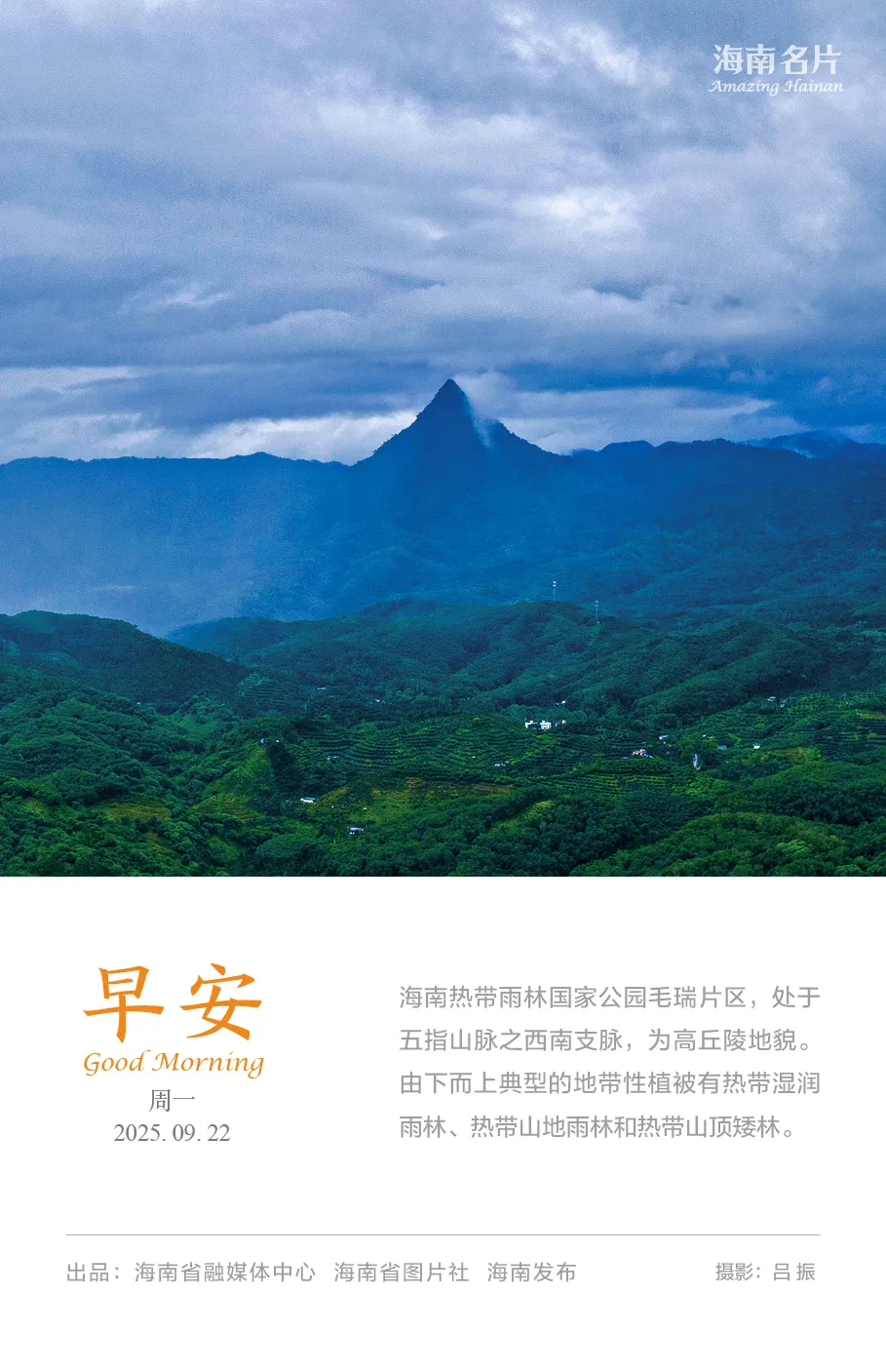 今天是2025年9月22日 星期一 海南发布向您问好 新的一周 新的目标就在前方
