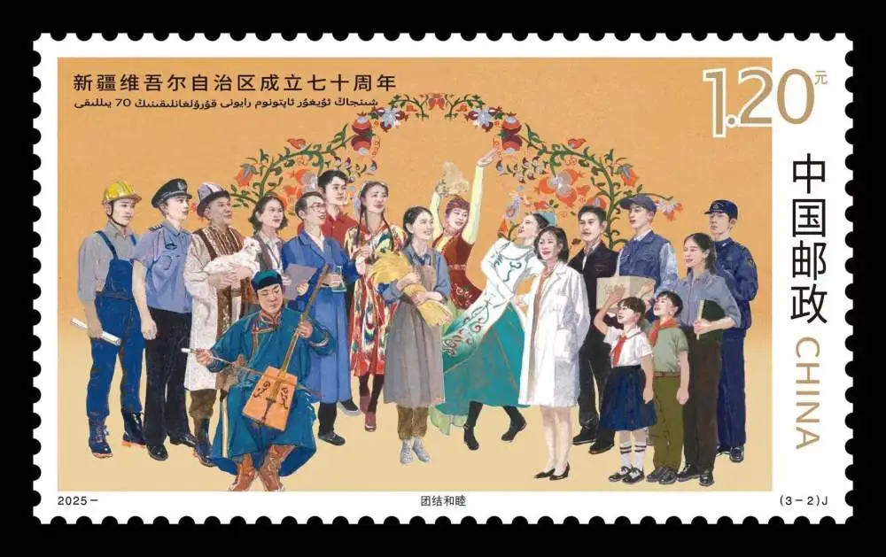 9月21日,《新疆维吾尔自治区成立七十周年》纪念邮票首发仪式在乌鲁木齐市新疆博物馆举行。(来源:新华社)