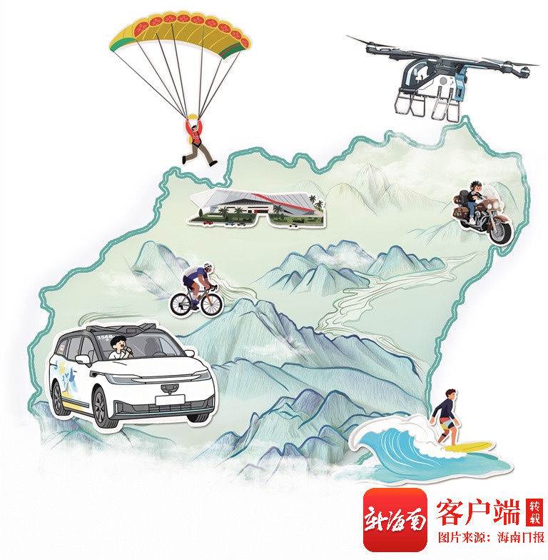 本版手绘/杨千懿 新玩法 驾驶从此不再单调,从陆地到天空,前方惊喜不断 别赶路,去享受路。 旅游博主陈新文很喜欢这句话。海南环岛旅游公路开通后,他多次来海南自驾,享受这条路上的风景,几乎每次都有新发现。今年国庆中秋的自驾之旅,给他的感受甚至可以用“惊叹”来形容——第一次体验了无人驾驶汽车。 租车网点就设在海口美兰国际机场。陈新文在工作人员的指引下租了一辆无人驾驶汽车,开启了这次的环岛之旅。“很奇妙,也很方便。”陈新文说,这种方便不仅体现在不用自己驾驶,能完全沉浸在路上的风景里,还在于汽车内提供的各种智能服务。 车内搭载了路线推荐、智慧导游、多语种智能语音交互系统,能随时为乘客介绍当地景点、历史人文背景等。虽是无人驾驶,但汽车启动、行驶、停靠都特别平稳,仿佛由经验丰富的“老司机”来掌舵。 “不仅有‘老司机’帮你开车,还有‘专属导游’帮你讲解。”对这趟“自驾”之旅,陈新文给出了很高的评价。 他体验的,恰好是无人驾驶旅游专线在海南的首秀。今年国庆中秋假期,海南交投环岛旅游公路投资开发有限公司与神州租车合作,在海南环岛旅游公路投放了搭载L4级自动驾驶系统的新能源汽车。海南环岛旅游公路也成为全省首个、国内少见的推广应用L4级自动驾驶的旅游公路。市场给出了积极的反馈:不仅预订火爆,在社交平台也掀起一股“打卡”热潮。 但这热潮并非才兴起,可以说,自诞生起,海南环岛旅游公路就自带流量。这条公路于2023年底通车,主线全长988公里,贯穿海口、文昌、琼海等沿海12个市县,沿途经过滨海岬角、特色海湾、红树林等约9类84段景观区域,将海南岛沿海的自然人文风景,串连成一条璀璨的“珍珠项链”。 文昌木兰湾段的风车海岸、琼海孟菜园村段的牛奶海、万宁正门岭大桥段的悬崖海岸、儋州峨蔓镇的火山海岸……在环岛旅游公路上,网友们不断发现新的“打卡”点。