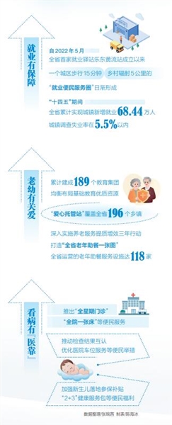 位于白沙黎族自治县牙叉镇新高峰村漂亮的农村小洋房。海南日报全媒体记者 张茂 摄 A 纾民困:就业“有岗” 创业“有路” 走进昌江黎族自治县七叉镇的千亩辣椒种植基地,翠绿的枝叶间挂满了细长的辣椒果实,绿意盎然。在工人们的熟练操作下,辣椒被有序地分拣、打包和运输。 “多亏了就业驿站及时出手相助,组建了一支70人的劳务队伍采摘辣椒,解了我的燃眉之急。”七叉镇一家农业合作社负责人老魏长舒了一口气。 在海南就业驿站(海口龙桥站)“站小二”的帮助下,海口2名长期失业人员顺利入职一家酒店,实现“家门口”的安心就业。 “在家附近找到了工作,既可以照顾家庭,也有稳定收入,很适合我。”成功入职的吴女士欣喜地说。 为用人单位招工、为求职者找工作,是就业驿站精准服务的常态。在海南各个就业驿站,这样的故事和场景处处可见。 就业是最基本的民生,牵动着千家万户。海南高度重视各群体就业工作,把稳就业作为民生头等大事,建立健全就业促进机制,推出系列稳岗拓岗举措,以就业之稳助力经济之稳、社会之稳、民心之稳。 “驿”路前行、“站”稳脚跟,海南将就业服务触角延伸至基层末梢。 自2022年5月全省首家就业驿站乐东黄流站成立以来,海南以建设就业驿站为突破点,构建就业公共服务体系,一个城区步行15分钟、乡村辐射5公里的“就业便民服务圈”日渐形成。 “就”在海南、“职”等你来,海南多措并举实现就业服务“零距离”。 线下,开展各类招聘活动,提供政策解读、就业指导等服务,为求职者搭建岗位对接“连心桥”;举办“封关拓新局·四城同办”校招活动,启动“百万英才兴海南”行动计划,为更多人才提供干事创业的舞台…… 线上,提供“365天×24小时”服务的“海南好就业”小程序日趋火爆。截至12月11日15时,“海南好就业”小程序累计发布岗位400.59万个、登记求职者29.45万人、浏览量348.26万次。 一组组数据背后,映照就业故事,点亮万家灯火。“十四五”期间,全省累计实现城镇新增就业68.44万人,城镇调查失业率在5.5%以内。 B 解民忧:优质均衡 守护“朝夕” 上午,家住海口市秀英区的王思荣老人来到该区秀英街道综合养老服务中心,在休闲区唱歌、跳舞,等待享用午餐。区域性养老服务中心变养老为“享老”,让老龄变“乐龄”。 下午,三亚市第二小学红庄校区书声琅琅,孩子们挺直脊背,目光专注,或诵读古诗,或演奏乐器,在舞台上勇敢展示自我。得益于集团化办学,孩子们享受到更多特色课程,校园生活丰富多彩。 老有所养、幼有所育,承载着人民群众最朴实的期待。围绕“一老一小”这一最现实、最紧迫、最突出的民生问题,海南持续筑牢人民群众的幸福保障网。 “有保障”迈向“高品质”。从深入实施养老服务提质增效三年行动,到推进区域性养老服务中心和社区居家养老服务站点建设;从培育“村哥村嫂”等本地照护骨干力量,到打造“全省老年助餐一张图”……一项项有力措施,绘就“乐养海南”幸福图景。 “有学上”变为“上好学”。从积极引进国内外基础教育优质资源,辐射和带动本地一批学校发展;到累计建成189个教育集团,均衡布局基础教育优质资源……一件件教育实事,让更多孩子在“家门口上好学”,生源回流成为新趋势。 顺着网络,更多优质教育资源“飞”向琼岛各地。依托国家中小学智慧教育平台全域深化应用试点,海南以数字赋能全省基础教育尤其是农村教育优质均衡发展。截至目前,海南智慧教育平台已聚合350万件数字教育资源、600万道试题资源,接入47款教育教学应用工具,海南电视端同步上线国家平台4500课时课程视频,推动优质资源全省共享。 老有所养、学有所教、病有所医,是千万海南群众过上美好生活的重要体现。海南也在用扎扎实实的举措,回应人民群众的期待。 在昌江,84家医疗卫生机构组建紧密型县域医共体,带动提升基层医疗机构专业技术水平;在屯昌,20余名来自全科医学、急救、心血管科等领域的省级医疗专家及骨干驻点坐诊…… “全星期门诊”和“全院一张床”等便民服务,推动检查结果互认、优化医院车位服务等便民举措,加强新生儿落地参保补贴、“2+3”健康服务包等便民福利,让群众看病更有“医靠”。 C 惠民生:美好生活 触手可及 行驶在五指山市南水公路上,所见皆美景:沿路是一座座民族特色村落寨子,踏入水满乡界后,云雾缥缈,入眼风景如一幅幅水墨画。 近年来,水满乡毛纳村积极发展生态旅游产业,巩固拓展脱贫攻坚成果同乡村振兴有效衔接,乡村生态游火热。 “过去都是茅草房,连路都没有。现在的生活好了很多,变化翻天覆地,小孩上学不用愁,家家都有存款,日子越过越红火。”谈起这些年村子的变化,毛纳村村民王菊茹深有感触。 如今,毛纳村依托茶叶种植、茶旅融合,不断拓宽村民致富路,人均年收入从1.5万元提升至2.36万元。 扎根广阔田野,海南借鉴“千万工程”经验,扎实推进宜居宜业和美乡村建设。截至目前,全省常住人口城镇化率达到63.08%,1800多个美丽乡村、300个和美乡村相继建成,城乡居民收入比缩小至2:1。 乡村面貌日新月异,美丽海南更加宜居。 ——看居所,持续实施安居房政策,“十四五”期间,动工建设11.7万套安居房,开工改造2187个城镇老旧小区,推进39个片区城市更新(含城中村)改造项目,保障海南人民“住有所