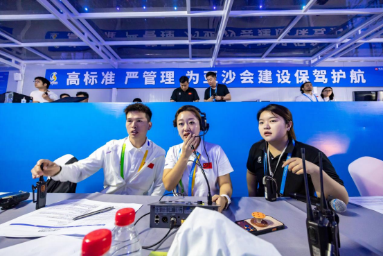 开闭幕式总导演章东新(左一)、执行总导演李洋(左二) 最后冲刺:从“技术联排”到“精雕细琢” 如果说3月30日结束的第一阶段技术联排是搭建“骨骼”,那么4月12日的第二阶段现场合成排练,就是填充“血肉”的关键一役。执行总导演吴宪透露,此次排练完全依照4月22日开幕式当晚的全要素标准进行演练。“从运动员入场流线到文艺表演的篇章转换,每一个点位都经过了反复校验。”这标志着开幕式筹备正式告别“磨合期”,驶入最后的“决战冲刺”。 这不仅是一场给导演组的“摸底考”,更是对所有演出志愿者的压力测试。据悉,4月16日和4月20日,亚沙公园将分别迎来两次带观众预演,为开幕式当晚做足“实战”准备。