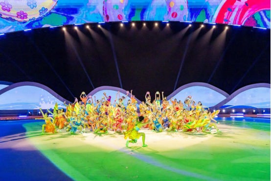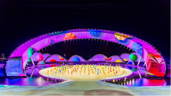 开幕式吉祥物“亚亚” 匠心制作:在极限自然中“破浪前行” 在亚沙公园现场,最震撼的是舞台正后方的三亚湾与背后屹立的天涯海角礁石群。“我们最大的舞美,其实是三亚原有的自然风貌。” 总导演黄沛凌站在“阳光之环”舞台中央说道。 为了不让人工痕迹破坏自然之美,制作团队经历了严苛的考验,制作总监魏来坦言:“在户外搞开幕式,最大的挑战来自大自然。由于场地紧邻海边,海风大、湿度高、盐分重,所有设备不仅要防风、防水,更要防腐蚀。在前期搭建阶段,我们对每一根线缆、每一块屏幕都做了多轮的环境测试和抗风加固。” 在视觉呈现上,开幕式利用地面长达100多米的通道和2000多平方米的中心圆舞台作为投影载体,通过数字影像与沙滩、海浪的虚实结合,让观众的视线不再局限于传统舞台,而是融入三亚的天海里。 青春主场:这届开幕式很“年轻” 这不仅是一场阳光下的体育盛会,更是一场属于年轻人的青春派对。导演团队中有经验深厚的老将,更涌现出大量00后、05后的新生力量。从服装设计到视效编排,这股“新”意渗透每一处细节。仪式总导演王立媛透露了一个充满巧思的细节,在体育仪式环节,团队没有选择“整齐划一”的刻板表达,而是采用更具活力感、更符合年轻人审美的定格姿势。“我们希望用年轻人特有的自信、松弛与热情,去迎接每一位远道而来的亚洲朋友。”