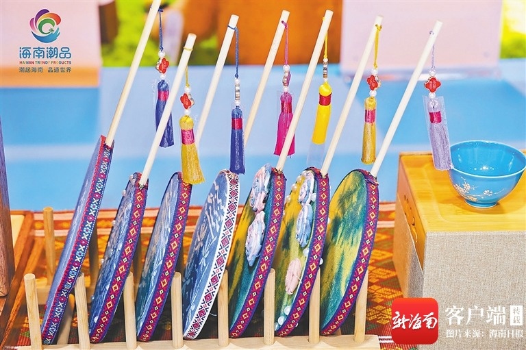黎锦扇子。海南省文化投资管理有限公司供图 潮玩出圈 从画布到掌心 在“画里屯昌”展区,一幅幅描绘屯昌风光、海南风情的油画作品吸引着观众驻足。但今年,这里真正的“主角”似乎另有其物。展台前,人们低头把玩、询价的,不再是动辄数万元的大幅画作,而是一枚枚掌心大小的冰箱贴。 屯昌县油画产业协会副会长郑惠手里拿着一个精致的冰箱贴,上面画的是木色湖,色彩明快,小巧的身姿更显精致。 “它的原作就是后面这幅大油画。”她指了指身后的展品,笑着说,“油画不单单只是适合挂在墙上,像这种小小的衍生品,可以随手贴在我们的冰箱上,更贴近我们生活的日常。” 这正是屯昌油画产业正在经历的微妙变化。这个素有“油画之乡”美誉、由放下锄头的农民画师群体支撑起的产业,年产值约700万元,已经形成了“乡村创作——县城交易——全域延伸”的链条。但在消博会这个国际化的舞台上,他们敏锐地捕捉到了市场的新脉搏。 “这次来消博会,不单单有比较大的作品,我们还有各种延伸出来的小文创。”郑惠介绍,除了冰箱贴,还有将屯昌水晶与油画结合的手作冰箱贴,这些都是一两个月前才研发出来的新品,在消博会上首次亮相。“这几天卖得比较火的,也都是这些小小的东西。” 从厚重的画框到轻巧的伴手礼,不是产品缩小了,而是思路打开了。为了让更多人接触油画,屯昌还推出了“68元当一日艺术家”的体验活动,由画师一对一指导,画完还能将作品带走。 郑惠透露,下一步开发重点就是这类小礼品、小摆台,甚至提供定制伴手礼服务。屯昌油画正试图从墙上的艺术品,变成可以“揣进兜里带走”的文化符号。这种“轻量化”转身,让乡土艺术在与消费市场的碰撞中,找到了更灵巧、更广阔的生存空间。